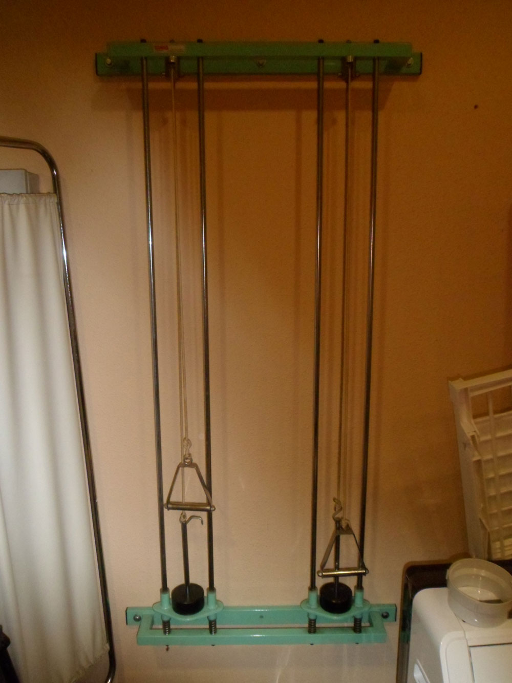 - Juego de poleas de función bilateral, para miembros superiores e inferiores